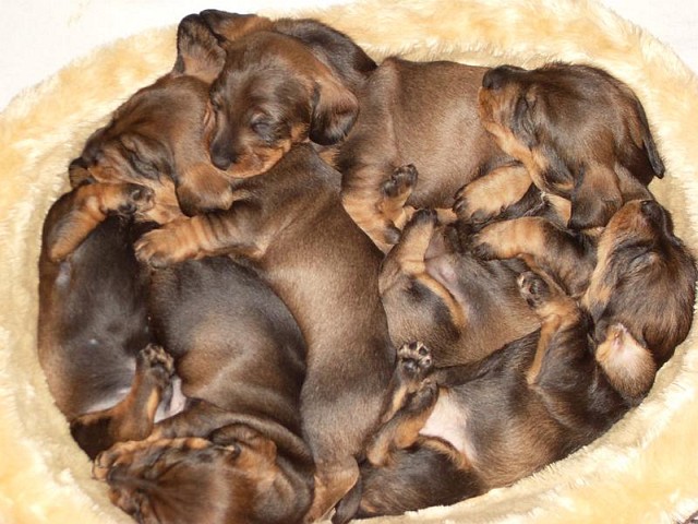 Ein bis zwei Würfe pro Jahr werden von uns liebevoll im Haus aufgezogen. Dabei legen wir sehr viel Wert auf Wesensfestigkeit: Unsere Teckel sind verspielt, wasser- und arbeitsfreudig, verträglich mit Mensch und Hund sowie ausgesprochen kinderlieb.