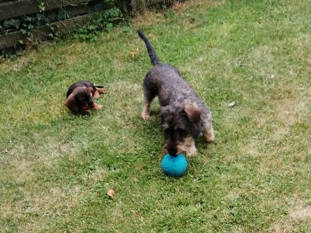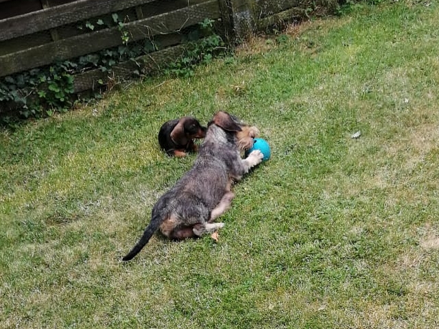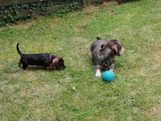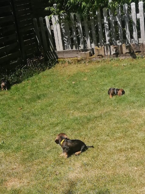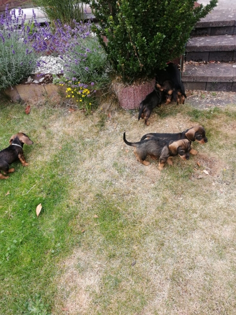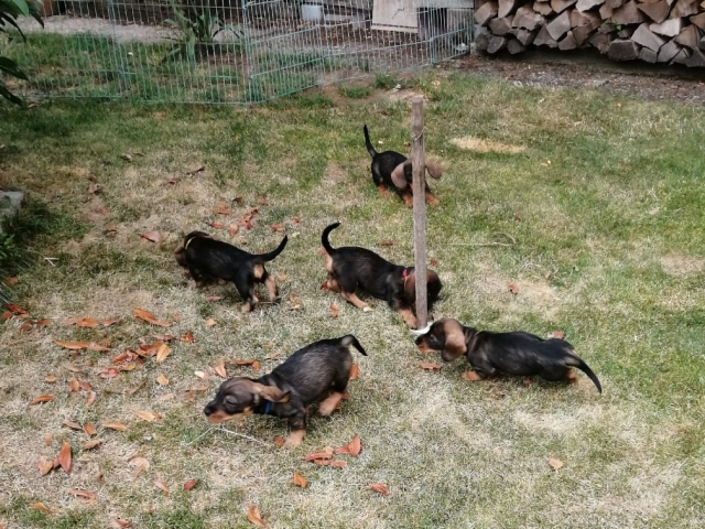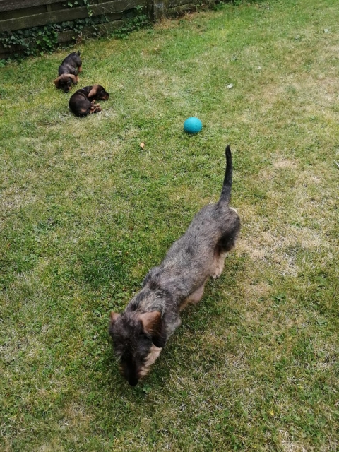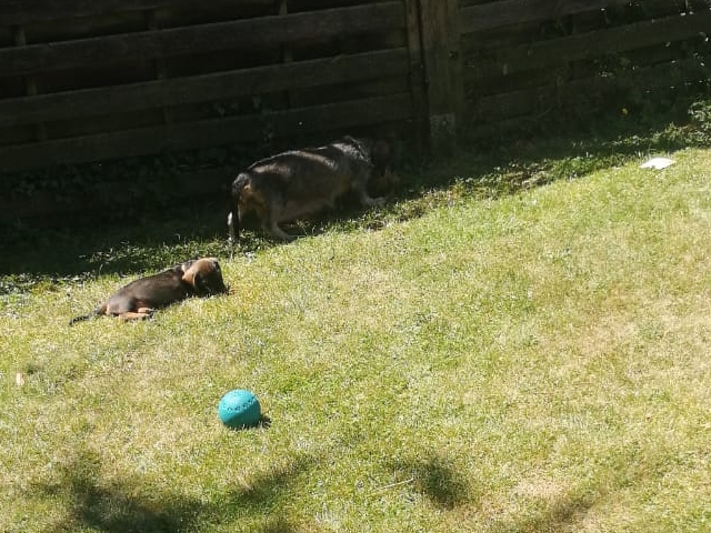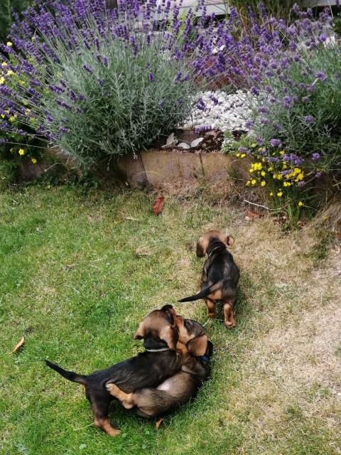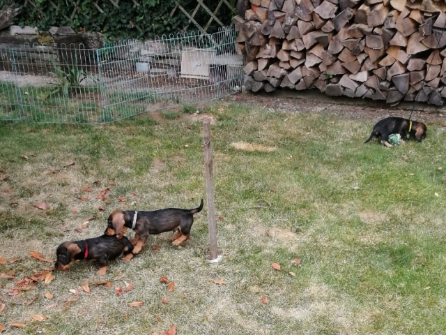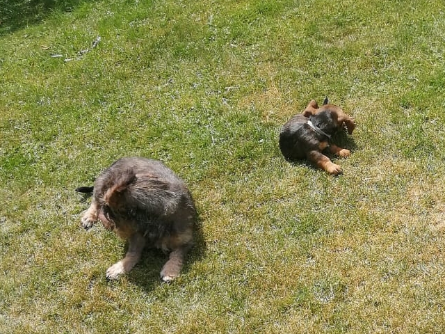 14.07.2022: Die Welpen sind jetzt 7 Wochen alt und sehr, sehr munter, wie man in den Videos sieht 😉 Im Garten gibt es immer wieder etwas zu erkunden.