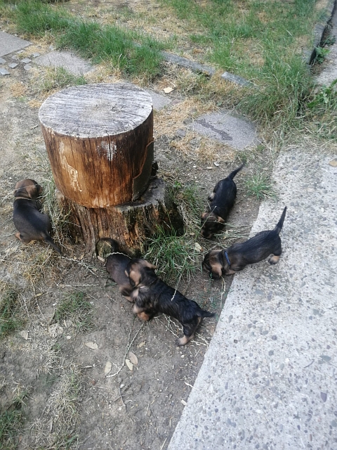 19.06.2025: Mühselig sind die ersten Schritte 🙂 Die Welpen gedeihen sehr gut.